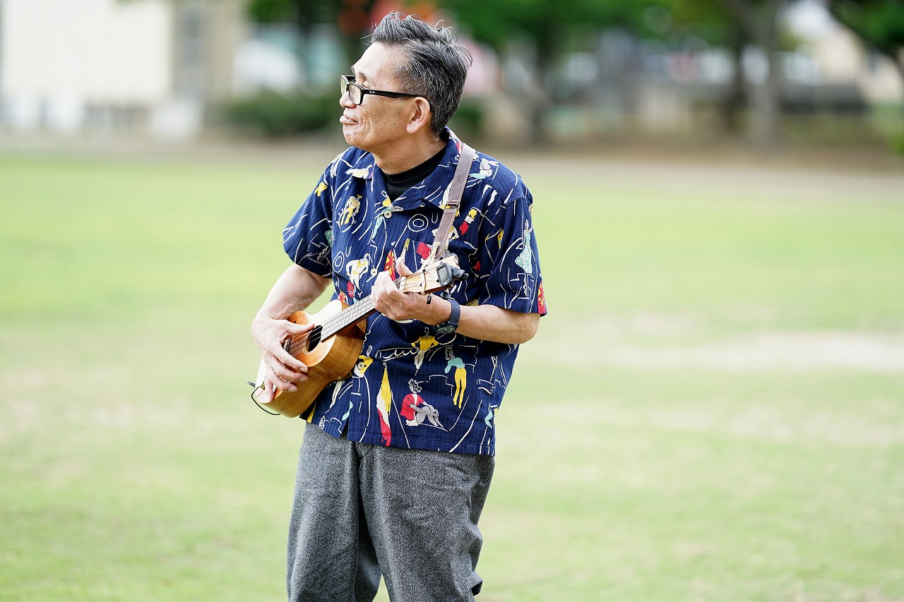 中央公園では攻守入れ替わってかせのさんがウクレレ。