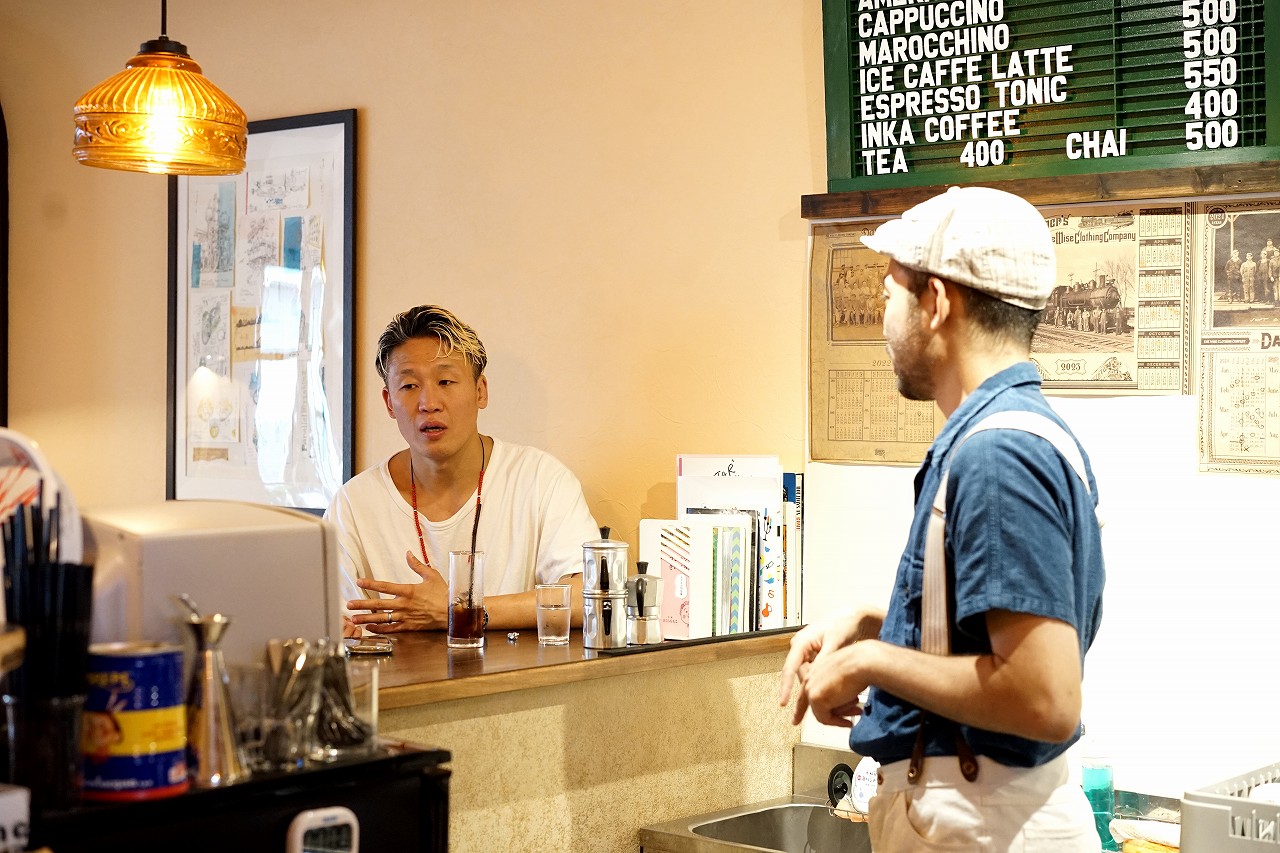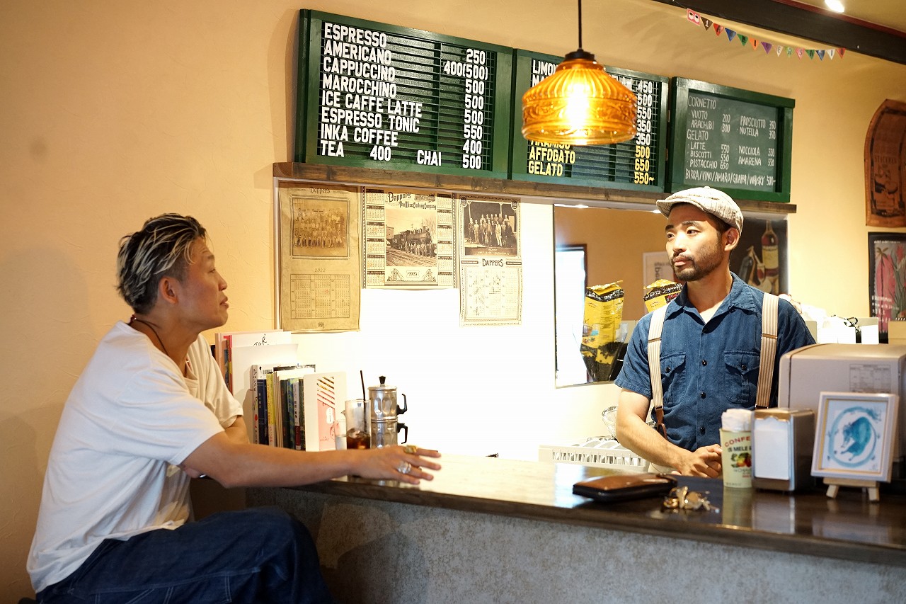 “トモエ食堂”で夜の食事を共にし、翌日朝はジェラードとは浅からぬ縁の”エスプレッソをひとつ”でエスプレッソと名物のティラミスを食べてから帰られました。