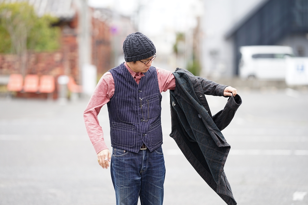 ・ベスト SUGAR CANE (シュガーケーン) 9ozウォバッシュストライプ・ワークベスト SC12654 ワンウォッシュ サイズ38