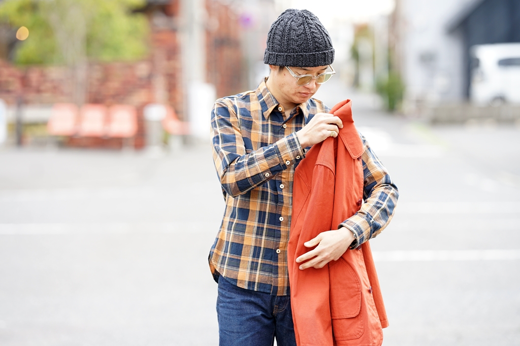 ・長袖シャツ DELUXEWARE (デラックスウエア) ミディアムネルシャツ MV-15 ”ORANGE NAVY CHECK” オレンジネイビー Sサイズ