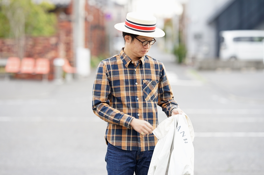 ・長袖シャツ DELUXEWARE (デラックスウエア) ミディアムネルシャツ MV-15 ”ORANGE NAVY CHECK” オレンジネイビー Sサイズ