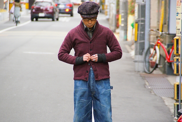 ・スウェットカーディガン DALEE’S (ダリーズ) ショールカラー・スウェットカーディガン ”RACTER (ラクター)” …30s NECK-WARM Cardigan 黒杢レッド サイズ37