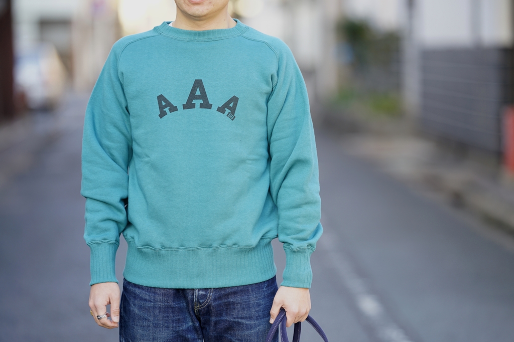 ・スウェット John Gluckow (ジョン・グラッコー) 針抜きスウェット JG-CS24 The Albert Sweat “Army AA” ブルーグリーン Sサイズ