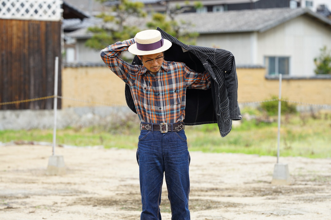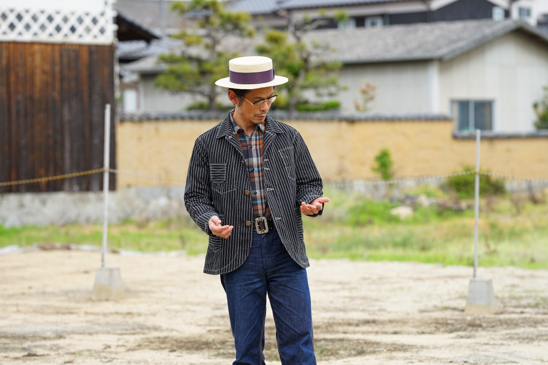 Pherrow’s ”555CA” BLACK WABASH × JELADO AG61101 ”1942s Smoker Shirt” 2021年4月23日 by Sweet Sue モデル 身長163cm体重56kg胸囲90cmウエスト78cm ・帽子 Speier’s (スピアーズ) カンカン帽 ・アウター Pherrow’s (フェローズ) 30sカバーオール 555CA ブラックウォバッシュ サイズ36 ・長袖シャツ JELADO (ジェラード) ワークシャツ AG61101 ”1942s Smoker Shirt (1942s スモーカーシャツ)” ブラック Sサイズ ・パンツ DALEE’S (ダリーズ) デニム・ペインターパンツ ”SEALs (シールズ)” …30s NAVY TROUSER インディゴ サイズ29 ・ベルト Dapper’s (ダッパーズ) × ACE WESTERN BELTS (エースウエスタンベルト) スタッズベルト 1253A ”Indian Symbol Studs Belt” ブラック サイズ32 ・ブーツ JELADO (ジェラード) 20sスタイルドレスシューズ JRS-1001 ”Gotham” ブラウン サイズ7.1/2