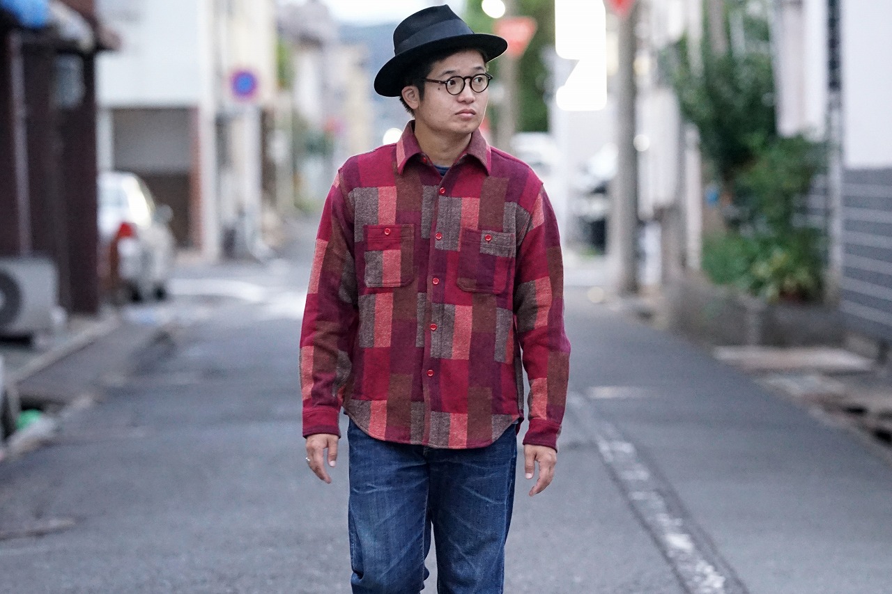 ・長袖シャツ SUGAR CANE (シュガーケーン) ワークシャツ SC29590 ”Add Human Labor RANDOM PATCHWORK WORK SHIRT” レッド Sサイズ