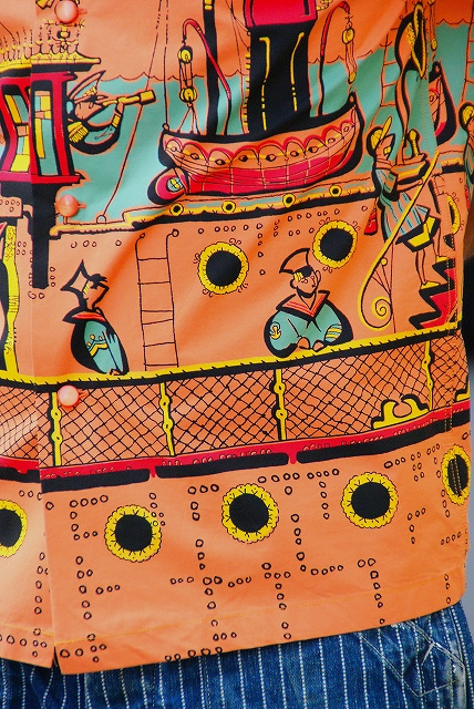 ・半袖シャツ STAR OF HOLLYWOOD (スターオブハリウッド) 半袖オープンシャツ SH38392 ”SEA VOYAGE” オレンジ Mサイズ