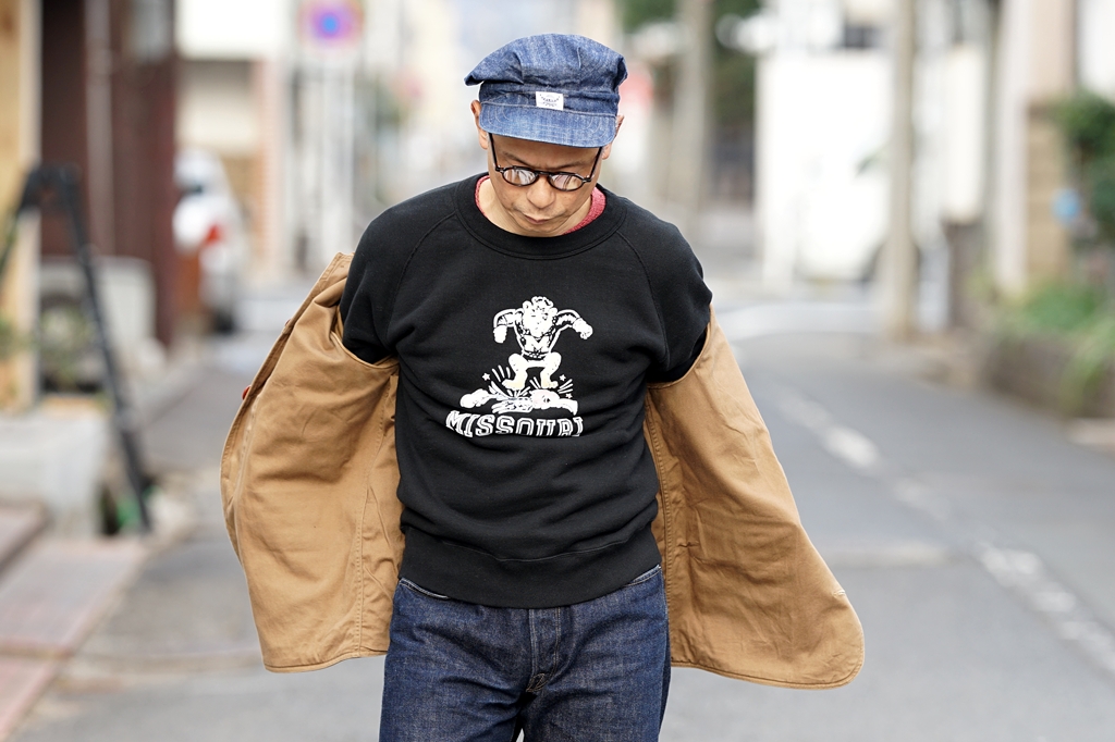 ・スウェット Dapper’s (ダッパーズ) フロッキースウェット 1736 ”MISSOURI” ブラック サイズ36