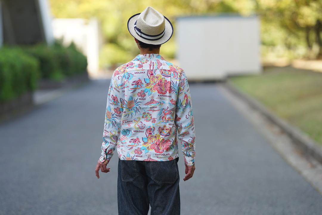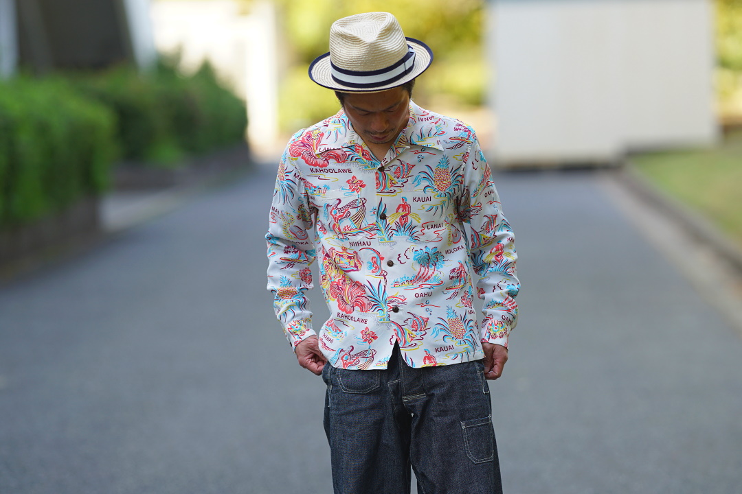 SUN SURF SS28553 ”EMPYREAL GIFT FROM HAWAII” OFFWHITE 2021年6月2日 by Sweet Sue モデル 身長163cm体重56kg胸囲90cmウエスト78cm ・帽子 アジャスタブルコスチューム フロントピンチ・サマードレスハット AHT-004 ナチュラル ¥15,540・長袖シャツ SUN SURF (サンサーフ) 長袖ハワイアンシャツ SS28553 ”EMPYREAL GIFT FROM HAWAII” オフホワイト Sサイズ ・パンツ JOHN GLUCKOW (ジョン・グラッコウ) ワークパンツ JG94302 ”Net Maker’s Trousers” インディゴ Sサイズ・ブーツ JELADO (ジェラード) 20sスタイルドレスシューズ JRS-1001 ”Gotham” ブラウン サイズ7.1/2